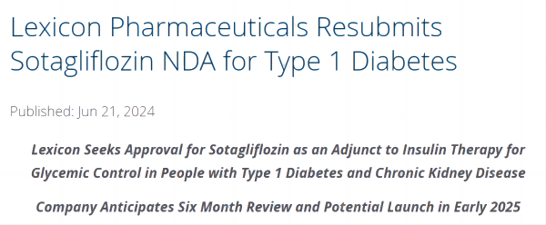 6月21日,Lexicon宣布,在與FDA進(jìn)行多次互動(dòng)并得到最近的反饋后,該公司已重新提交了索格列凈(sotagliflozin)的新適應(yīng)癥申請(qǐng),作為胰島素治療的輔助藥物,用于1型糖尿病和慢性腎臟病(CKD)患者的血糖控制。