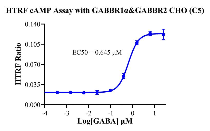 為助力GABABR靶點(diǎn)藥物研發(fā),南京科佰開(kāi)發(fā)GABBR1α&GABBR2 CHO和GABBR1β&GABBR2 CHO細(xì)胞篩選模型。部分細(xì)胞產(chǎn)品驗(yàn)證結(jié)果如下: