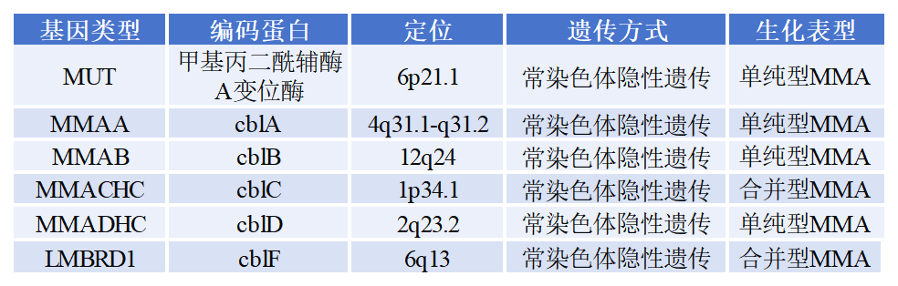 甲基丙二酸血癥(methylmalonicacidemia,MMA)又稱甲基丙二酸尿癥(Methylmalonicaciduria),是我國(guó)罕見病中最常見的常染色體隱性遺傳的有機(jī)酸代謝病。MMA由甲基丙二酰輔酶A變位酶(methylmalonylCoAmutase,MCM)或其輔酶鈷胺素(cobalamin,Cbl;也即維生素B12,VitB12)代謝缺陷所導(dǎo)致。根據(jù)患者血液總同型半胱氨酸是否增高,分為單純型MMA及MMA合并同型半胱氨酸血癥(簡(jiǎn)稱合并型MMA)2種生化表型。合并型MMA占我國(guó)MMA患者的70%左右。目前已知與合并型MMA相關(guān)的基因有1個(gè)(MMACHC),與單純型MMA相關(guān)的基因有5個(gè)(MUT,MMAA,MMAB,MCEE,MMADHC)。還有一些基因可致不典型MMA或少見疾病并發(fā)MMA,包括HCFC1,ACSF3,ALDH6A1,TCblR, CD320,LMBRD1,ABCD4,SUCLG1,SUCLG2等。
