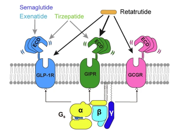 GCGR(胰高血糖素受體)是一種B類GPCR,最初被描述為與腺苷酸環(huán)化酶功能相連的胰高血糖素結合體。GCGR促進肝糖原分解、脂肪氧化和能量消耗,但過度激活可能導致高血糖。與GLP-1R聯(lián)用可抵消升糖風險,同時增強減重效果。