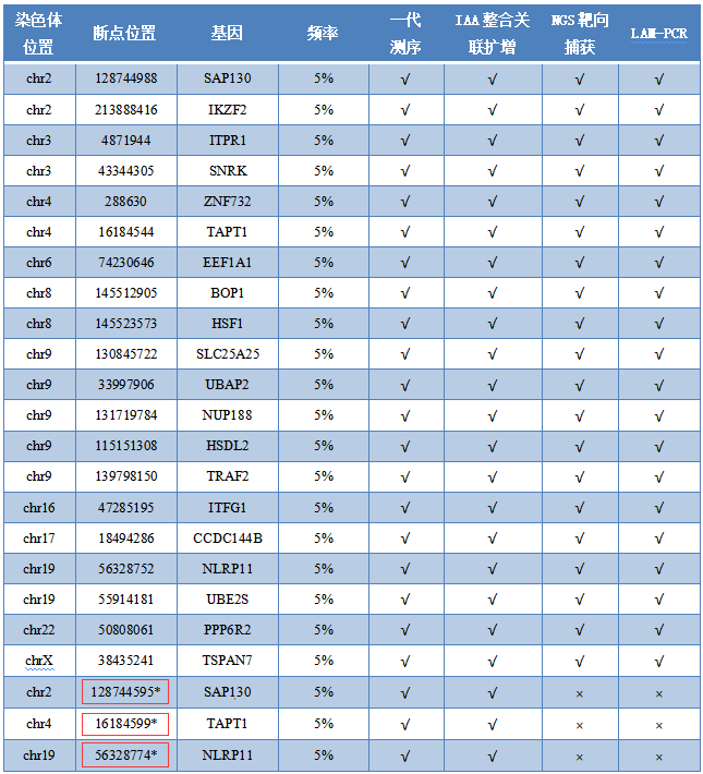 該產(chǎn)品選取公布的位點信息僅來自于31家實驗室大多數(shù)獲得的較為一致的結(jié)果,不排除有一些潛在的未被公布,對一些復(fù)雜的非典型的整合和插入方式(例如一端或部分LTR發(fā)生缺失的整合位點)可能存在漏報;