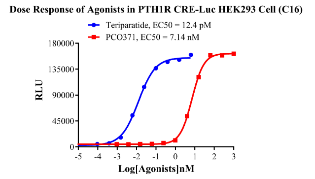 CHO、PTH1R CRE-Luc HEK293和PTH1R β-Arrestin CHO細胞篩選模型,產(chǎn)品驗證結果如下: