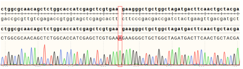 Figure 12. ACVR2B Effector Reporter Cell 測序結(jié)果 ACVR2A(NM_001616.5): c.409_410insT/ ACVR2A:p.Y137Lfs*76
