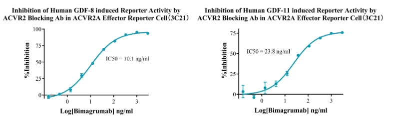 Figure 13.Dose Response of Recombinant Human Activin A in ACVR2B Effector Cell(2C8).Dose Response of Recombinant Human GDF-8 in ACVR2B Effector Reporter Cell(2C8).Dose Response of Recombinant Human GDF-11 in ACVR2B Effector Reporter Cell (2C8).