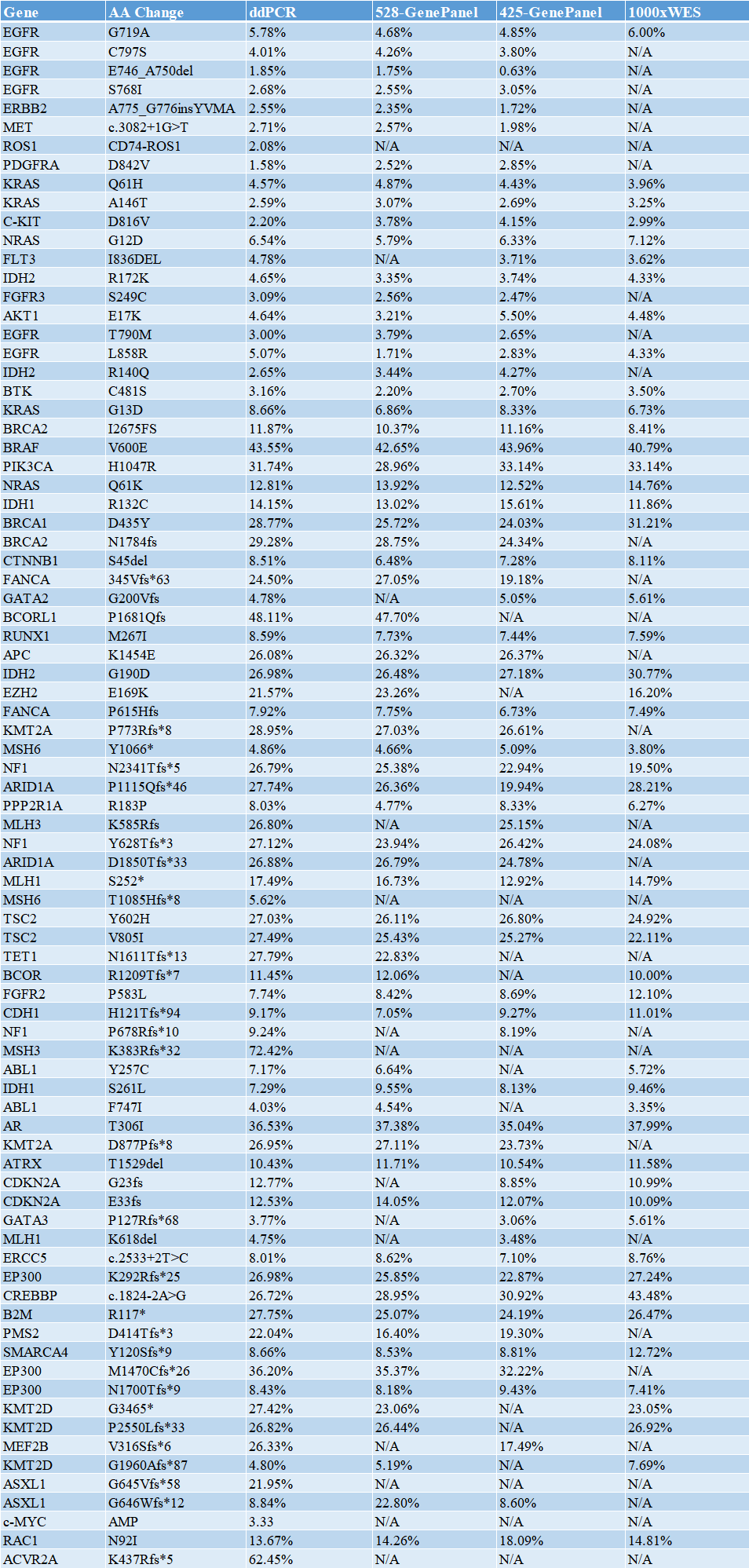 3.定標方案更科學(xué):采取4種方法定標,分別是1000xWES,3000x 425 Gene-Panel(友商-組織樣本),3000x 528 Gene-Panel(內(nèi)部開發(fā)探針捕獲法),82位點的ddPCR(3復(fù)孔);