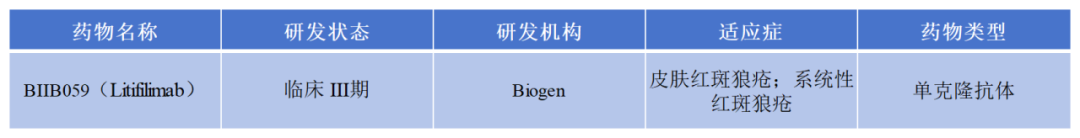 目前,全球關(guān)于BDCA-2這個靶點的在研管線并沒有很多,進(jìn)展最快的是渤健生物開發(fā)的BDCA-2單抗BIIB059(Litifilimab),通過抑制BDCA-2,減少IFN-I等炎性細(xì)胞因子的產(chǎn)生,從而達(dá)到治療紅斑狼瘡的目的。