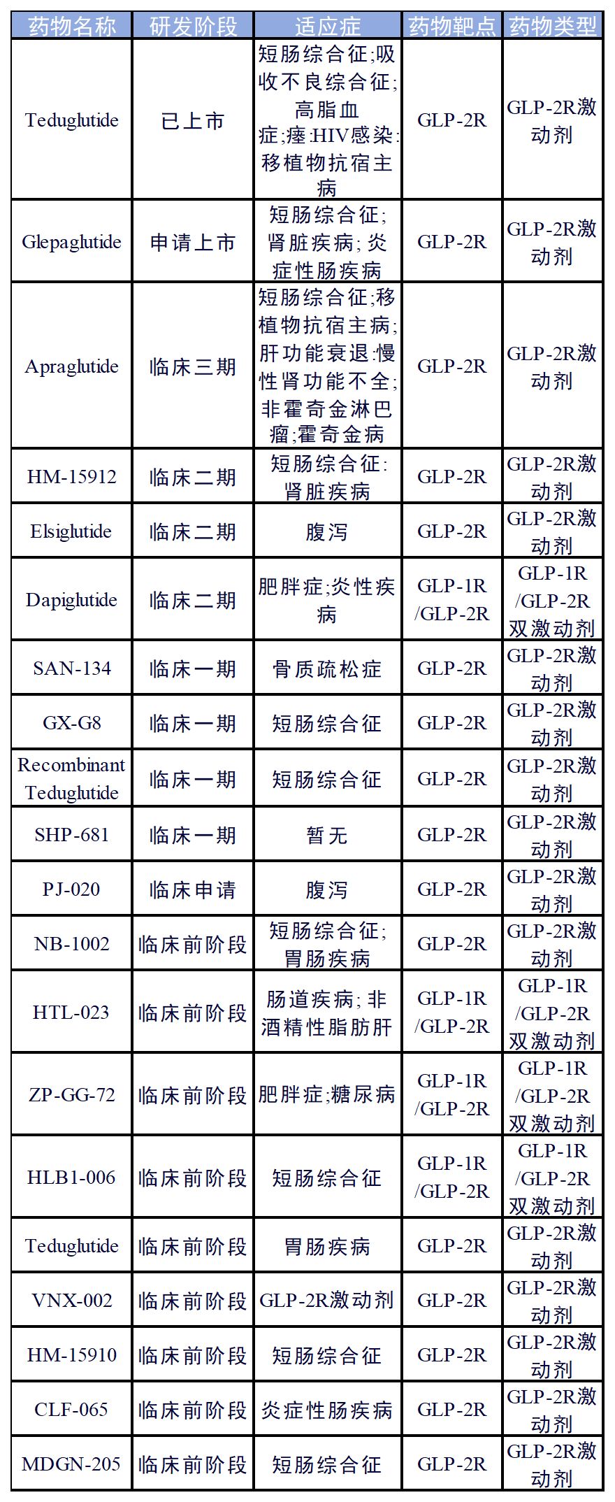GLP2R靶點藥物研發(fā)現(xiàn)狀